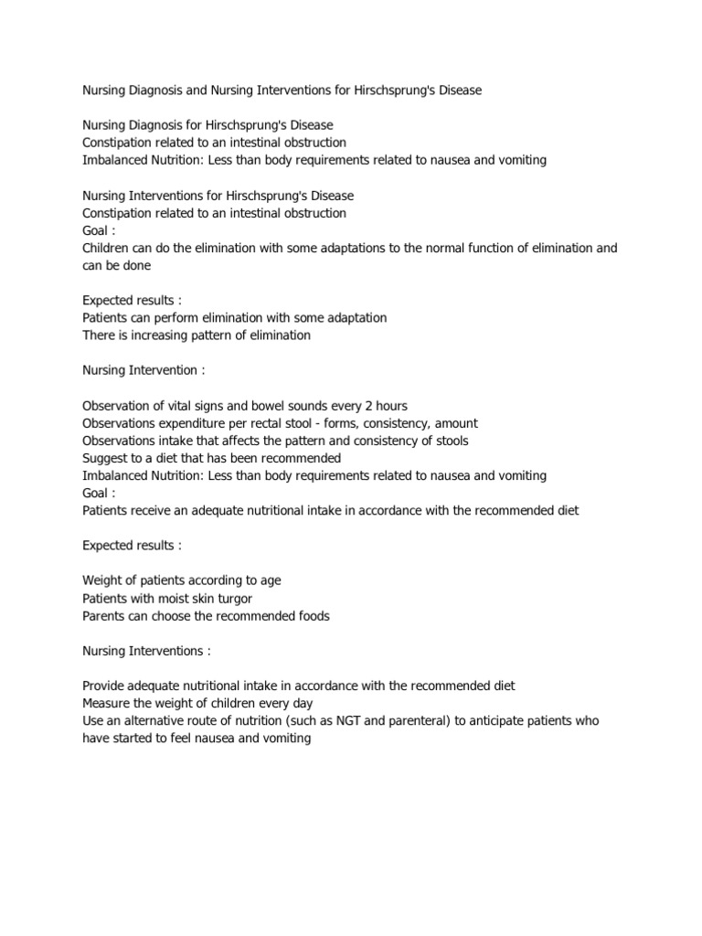 Nursing Diagnosis For Hirschsprung Disease