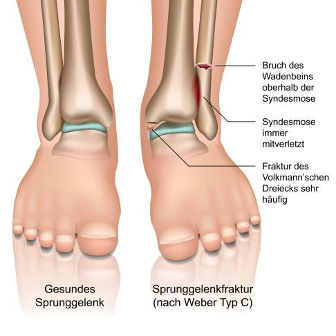 Nach zwei Tagen wieder aufstehen höllische Schmerzen nach drei Tagen mit Krücken gehen Belastung ca. Eine Sprunggelenksfraktur nimmt in der Regel einen guten Verlauf wenn eine fachgerechte Therapie und eine Physiotherapie zur Nachbehandlung erfolgen. Wenn Implantate nicht stören und zu keinen Komplikationen führen können sie auch belassen werden. Das geschieht mit Hilfe eines Unterschenkelgipses eines Vakuumverbands oder eines Stützverbands. Bei Patienten mit einer Weber-C-Fraktur sind es 75 Prozent. Nachsorge nach einer Operation der Sprunggelenksfraktur. Ab dann beginnt die Nachbehandlung und der Wiederaufbau der Muskulatur und Koordination.