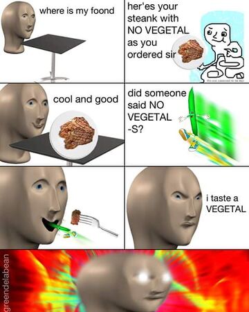 Your daily dose of fun. This can happen other times too. It features Meme Man the Steank Waiter and a vegetal.